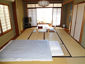 バストイレ付のお部屋 新館和室 (4部屋) バストイレ付の広いお部屋です。(12畳・16畳) バストイレなしのお部屋 新館ベットルーム(3部屋) バストイレなしのお部屋 和室(12部屋) 1〜2名用から4〜5名様用のお部屋まで、6畳のお部屋〜13畳のお部屋まであります。